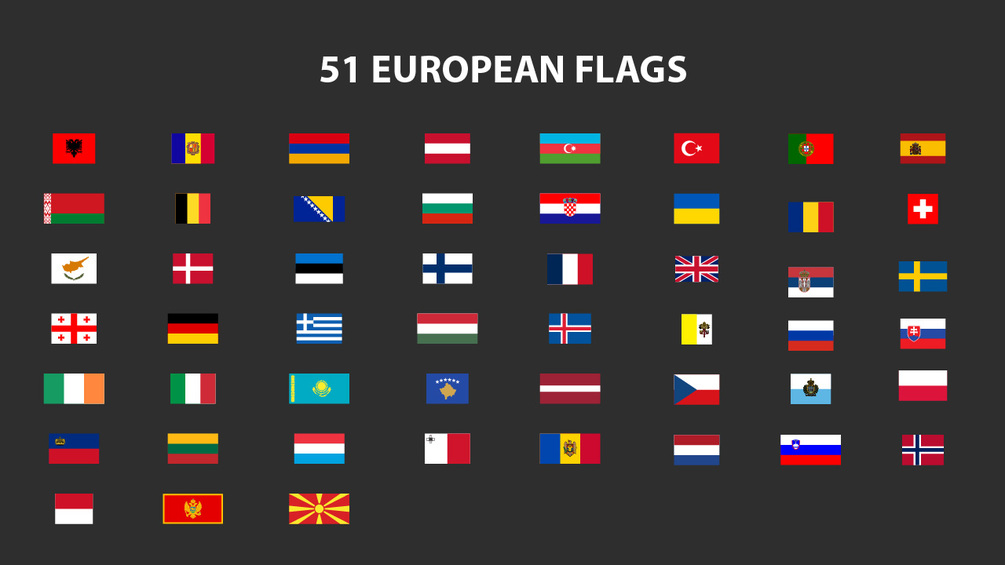 All 51 european flags in a vector format for Adobe Premiere and Adobe After Effects.